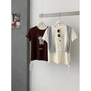 塞纳2025秋季新款简约日常百搭小狗图案厚实短袖T恤