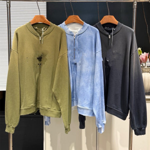 字母印花晕染长袖休闲运动风宽松百搭做旧拉链外套男女同款