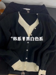 高品质原创!韩系穿搭chic别致假两件早秋撞色针织衫修身显瘦上衣