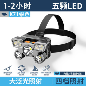 K71五灯定焦头灯-银色B款【塑料;内置电池400MAH】