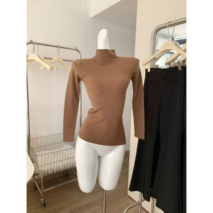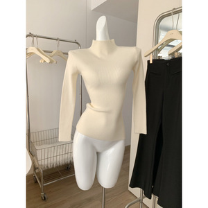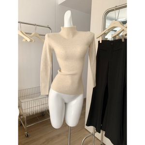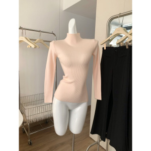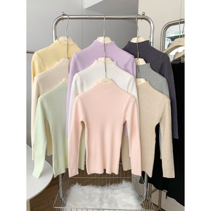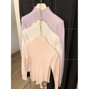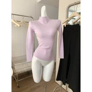 塞纳粉紫色半高领打底衫女毛衣韩系修身小香风内搭中领针织上衣