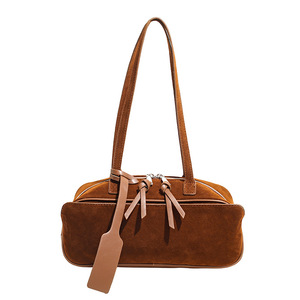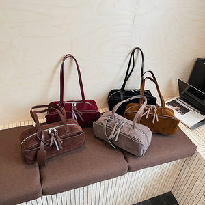 跨境高级感麂皮绒保龄球包手提腋下包2025新款磨砂波士顿包单肩包