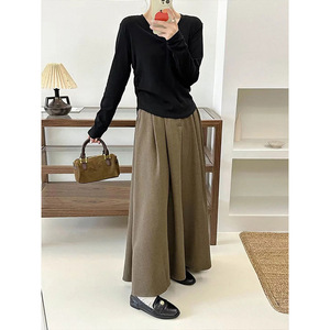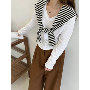 高品质韩版简约气质百搭修身弹力T恤女秋冬新款V领显瘦长袖打底衫