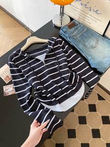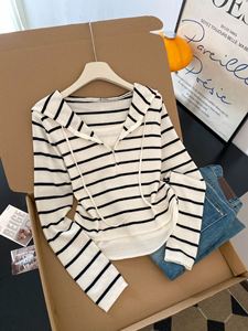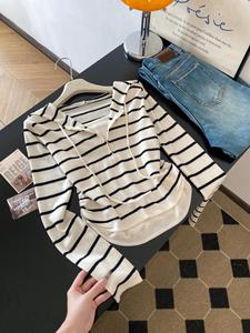 韩系早秋穿搭假两件半拉链连帽针织衫女2025新款洋气针织上衣