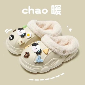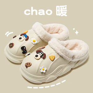 儿童棉拖鞋毛毛鞋保暖卡通柔软防滑毛毛鞋可拆洗中大童亲子棉拖