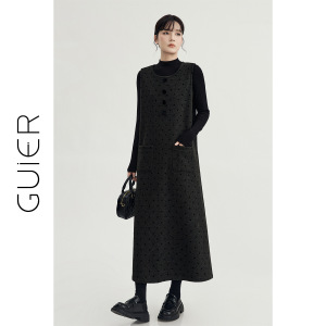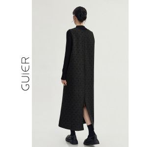 60235#「植绒波点」藏肉小能手!毛呢背心裙女初秋高级连衣裙子
