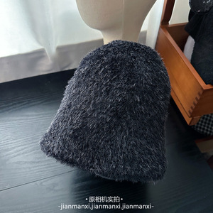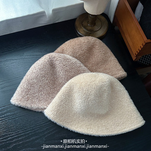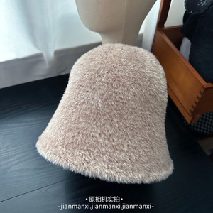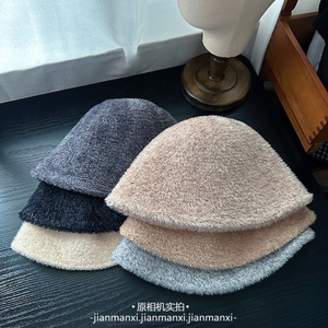 韩系纯色毛绒素颜渔夫帽子女秋冬氛围感百搭盆帽大头围保暖水桶帽