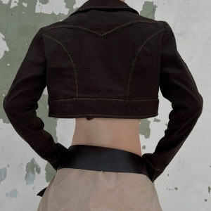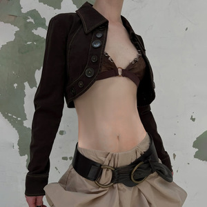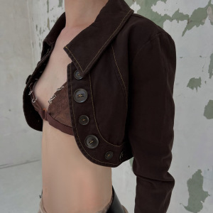 2025街头复古大纽扣设计露脐短款夹克衫辣妹个性穿搭翻领牛仔外套