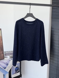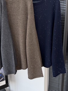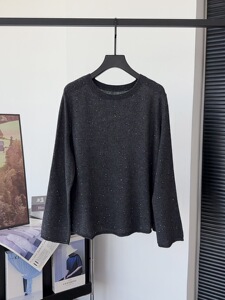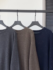 25早秋女士新品圆领慵懒休闲宽松羊绒亮片纯色长袖百搭针织衫毛衣