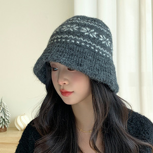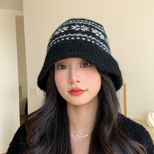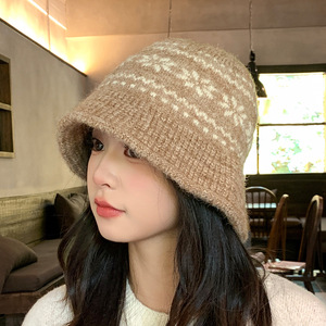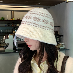 渔夫帽女冬款时尚百搭盆帽大头围显脸小冒险毛骑行护耳提花针织帽