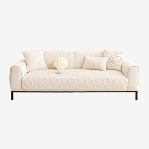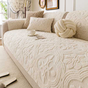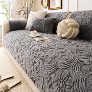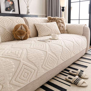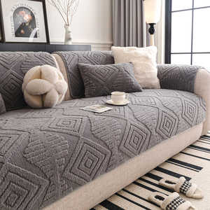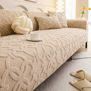 奶油风舒棉绒沙发垫加厚秋冬2025新款固定防滑坐垫一片式直排盖布