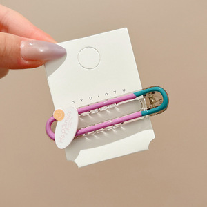 3#彩椭圆碎发夹-紫色一对约5.2cm