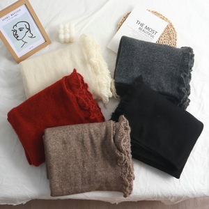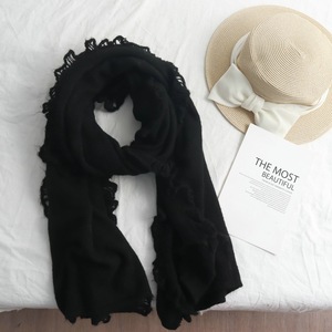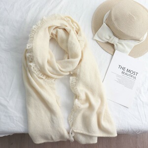 2025年新款纯色花边拼接长款围巾女文艺小清新时尚气质百搭披肩