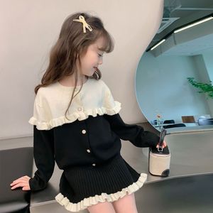 女童学院风半身裙撞色两件套秋装洋气儿童公主小香风花边裙套装潮