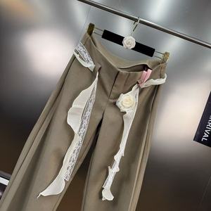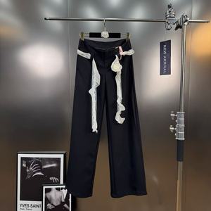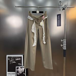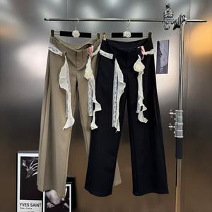复古风蕾丝拼接设计感腰带装饰显瘦气质西装长裤