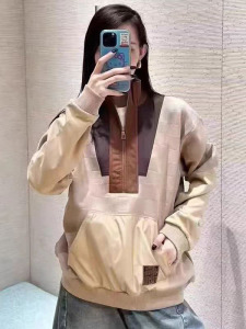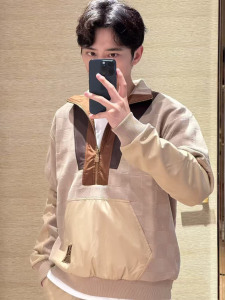 高品质2025早秋新款棋盘格拼接半拉链卫衣男女同款宽松时尚套头衫