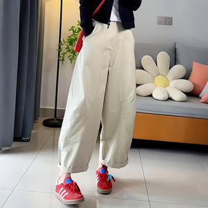 2025秋季新款大码高腰弯刀休闲裤女胖mm200斤宽松显瘦九分哈伦裤