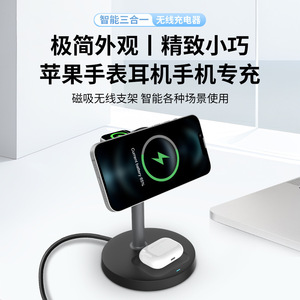 桌面三合一无线充电器15W快充强力磁吸适用苹果充电底座手机支架