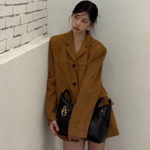 韩国ins秋冬新品美式复古咖色鹿皮绒西装外套美拉德长袖西服女
