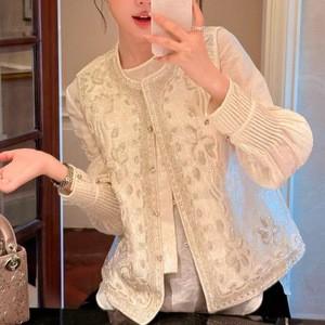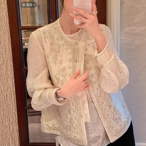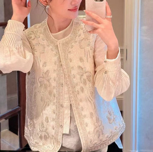 深圳南油女装2025秋季新款圆领无袖时尚重工钉珠花显瘦气质马甲女
