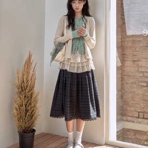 梗豆 叶隙风铃 四叶草假两件薄荷绿针织开衫套装罩衫