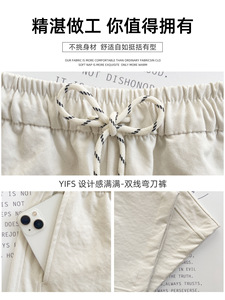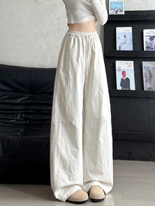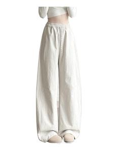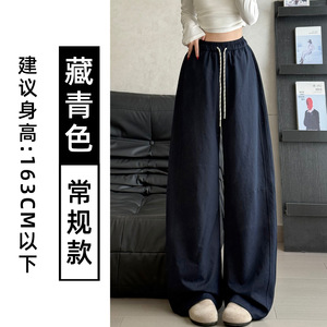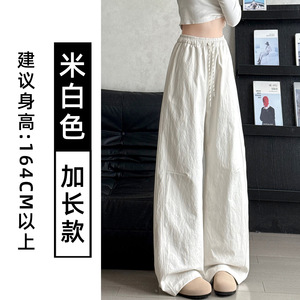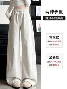 白色冰丝弯刀裤女秋季2025新款小个子垂感高腰宽松休闲运动阔腿裤