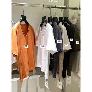 Hers一勺甜韩系极简风基础款百搭显瘦气质减龄V领短袖T恤女92359