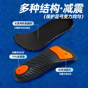 足弓支撑减震运动鞋垫男女石墨烯防臭抗菌透气跑步不累扁平足专用