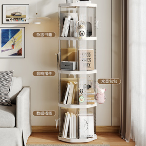 家用旋转书架落地透明儿童书柜多功能收纳柜大容量多层加厚置物架