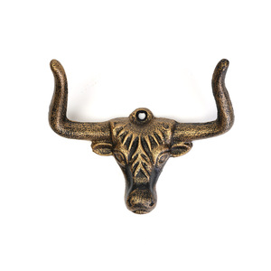 铸铁动物牛头挂钩双钩 复古金色墙面承重装饰钩衣帽钩钥匙钩 跨境