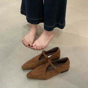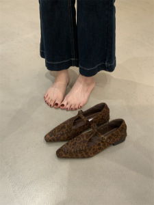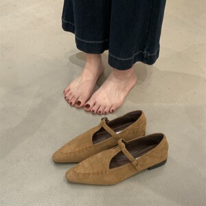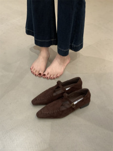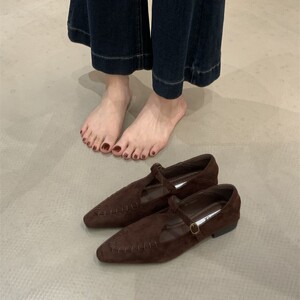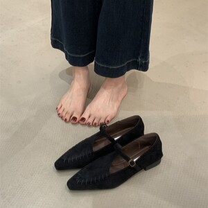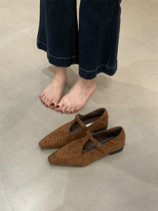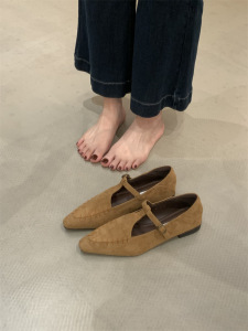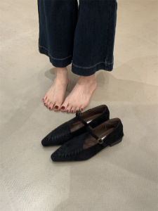 法式复古尖头绒面玛丽珍单鞋女鞋子2025新款春秋浅口平底鞋配裙子