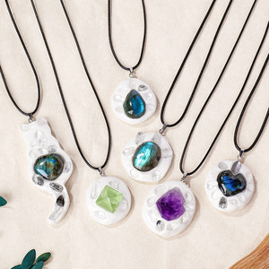 跨境天然水晶原石黏土吊坠紫水晶拉长石萤石diy女生佩饰项链挂件