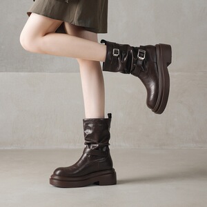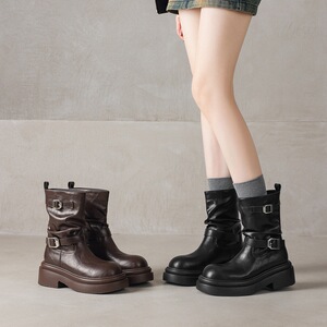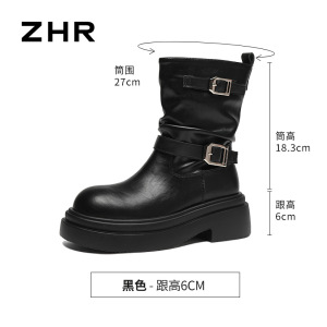 ZHR则则厚底短靴2025秋冬新款皮带扣马丁靴英伦风复古显瘦时装靴