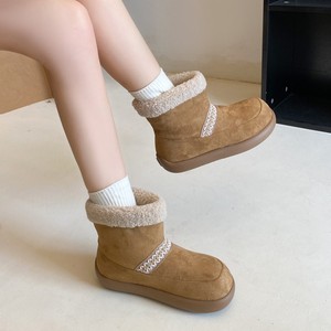 复古厚底加绒雪地靴女2025秋冬新款一脚蹬短筒保暖棉鞋大头短靴女
