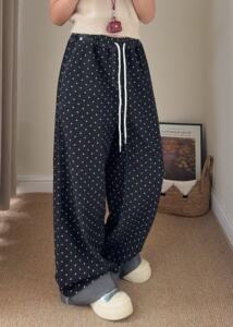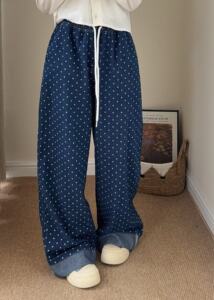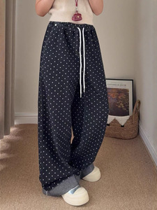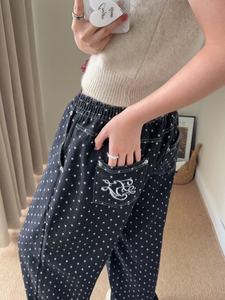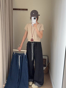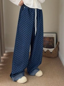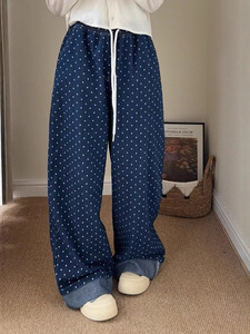 姜涩琪同款韩系街头风波点牛仔裤女秋季新款抽绳宽松休闲百搭裤子
