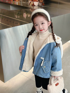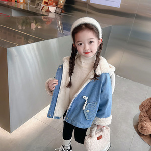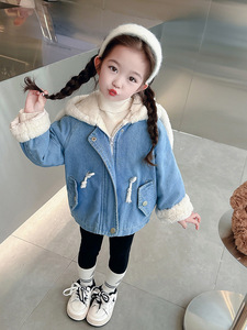 女童加厚绒毛兔耳朵牛仔外套2025新款秋冬季儿童宝宝洋气女孩上衣