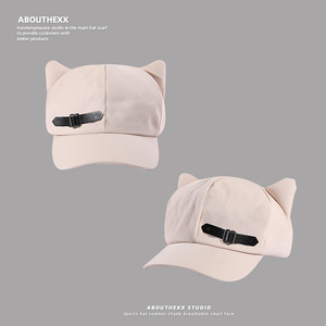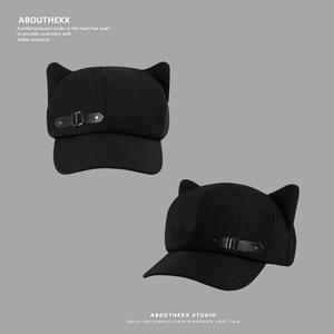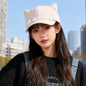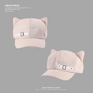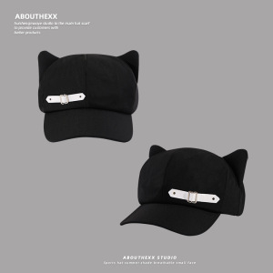 可爱猫耳帽子2025新款女潮酷皮扣八角帽日系二次元 y2k鸭舌贝雷帽