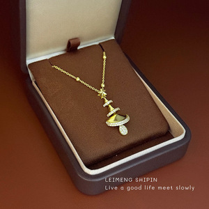 新中式金色花朵项链女复古轻奢高级感锁骨链时尚简约气质镶钻颈链