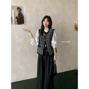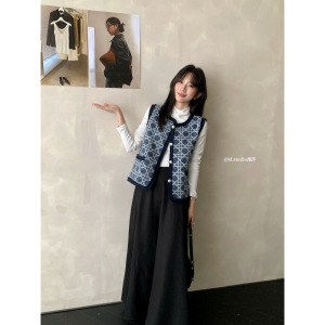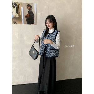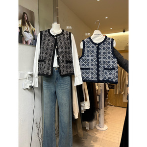 MSTUDIO漫莎-智性lady老钱气质挂撞色格子马甲7677