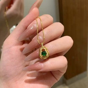 葫芦项链女新中式百搭个性气质绿石18K镀金送妈妈礼物直播批发