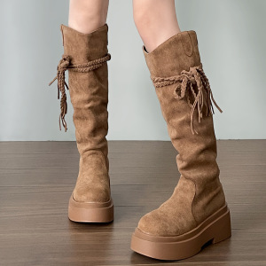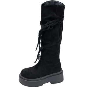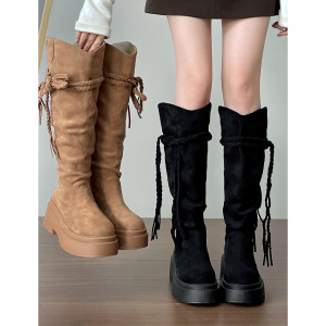 黑色高级感厚底靴子女长筒靴2025新款秋季配裙子显瘦增高骑士长靴