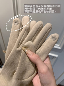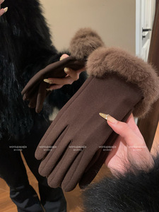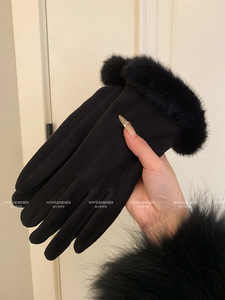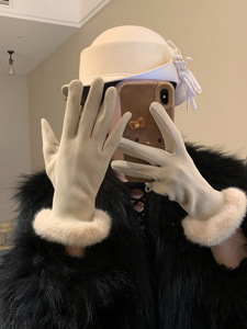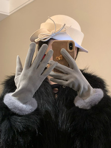 名媛千金风轻奢德绒仿兔毛手套女冬季加绒保暖防寒可触屏气质手套