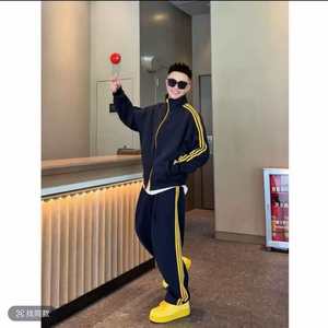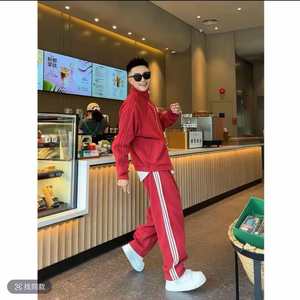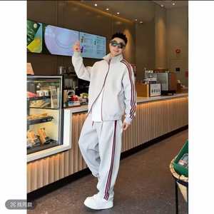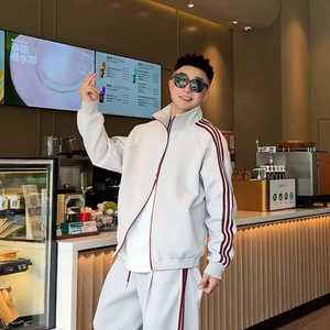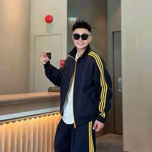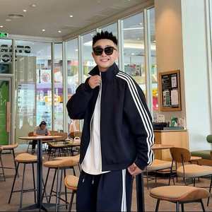 美式撞色三条杠立领卫衣运动套装2025春秋季新款休闲百搭成熟套装