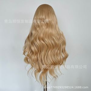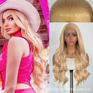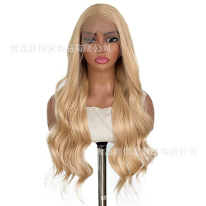 外贸欧美网红假发女 前蕾丝中长款波浪卷发金色化纤头套 工厂批发