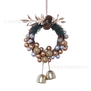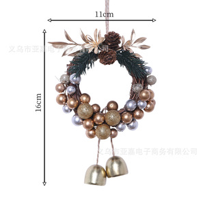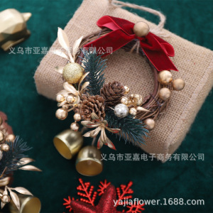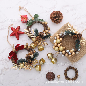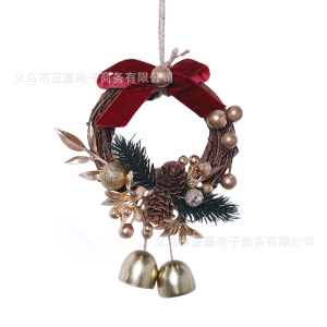 新款圣诞藤编花环铃铛蝴蝶结松果门挂圣诞节橱窗装饰挂饰家居挂件