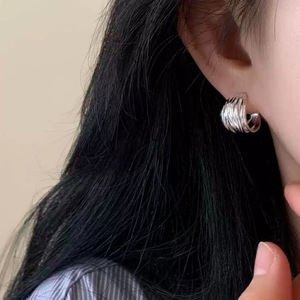 白金重工轻奢风C形多线耳圈小众复古潮流欧美设计感蚊香盘耳夹女