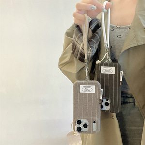 ins高级感绒布英文标签适用iPhone17苹果16ProMax/15手机壳14新款