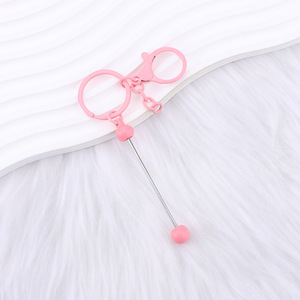 新款diy串珠钥匙扣 彩色金属钥匙扣手机耳机套挂件萌粒串珠钥匙扣