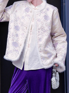 新中式系列款高端拼水貂毛新宋锦夹棉外秋冬新款国风保暖棉衣31