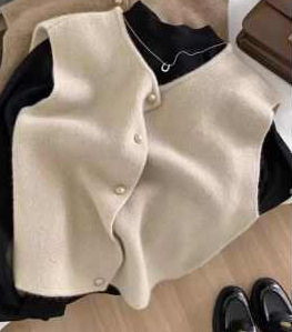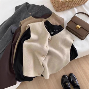 温柔系单排扣子针织衫马甲背心女春秋叠穿内搭韩系宽松坎肩上衣
